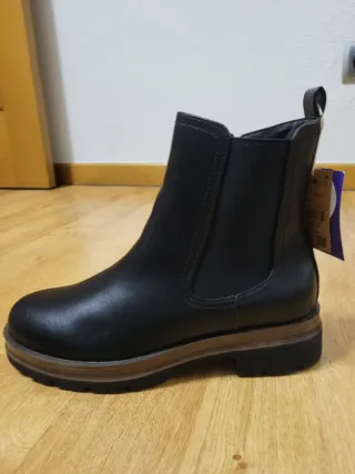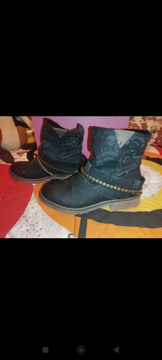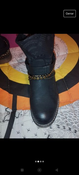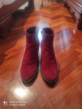 Sin estrenar, me quedan pequeñas y se me paso el plazo para descambiar. Me costaron 80€. Botín para mujer en serraje. La suela es plana, tiene 3 cm de grosor y está hecha de goma antideslizante. La plantilla interior es extraíble y está forrada en tejido transpirable para mayor comodidad. Este modelo calza la talla habitual. Más Información Tejano Serraje Tejido transpirable