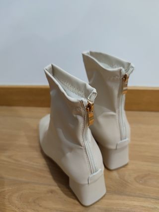 Botines beige pull&bear N 38, el tacón mide casi 9 cm y la plataforma delantera practicamente 1'5 cm.