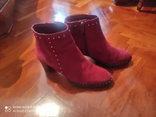 Botines de tacón alto, color burdeos, de ante. Ideales para cualquier ocasión. - Tacón de 8,5 cm. - Material: ante. - Color burdeos intenso. - Diseño elegante y cómodo.