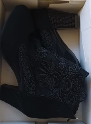 Botines de tacón con diferentes cuerdas de adorno. Puestos muy pocas veces como se aprecia en la suela. De la talla 39