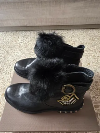 Botines de la marca Scherkes en talla 37. - Color negro. - Diseño con cordones y cremallera lateral. - Forro interior de pelo. - Suela de goma.