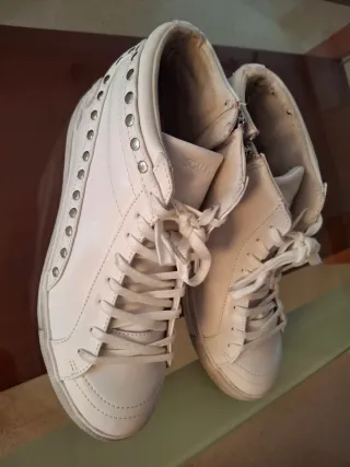 Zapatillas altas de la marca Scalpers en color blanco. - Cierre con cordones. - Cremallera lateral. - Diseño tipo botín.