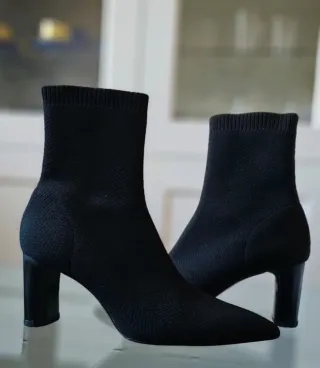 Elegantes botines negros de tacón de Zara en el número 38 - Diseño de tacón de aguja y elástico en tobillo para que se ajuste a modo calcetín - Material de ante sintético - Corte tobillero. Puestos únicamente para un evento..(ver fotos)