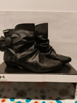 Botines elegantes de piel en color negro con un diseño moderno,talla 37.