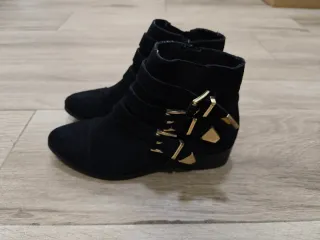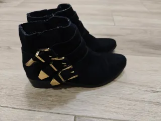 Botines de estilo Chelsea para mujer con un diseño moderno. Usados una vez - Acabado en ante sintético. - Detalle de tachuelas plateadas alrededor de la caña. - Paneles elásticos laterales para facilitar su puesta. - Suela plana y cómoda.