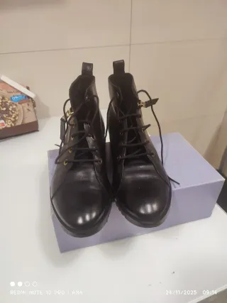 Vendo estos botines de la marca Pitillos, talla 38, en perfecto estado y con muy poco uso. Son súper cómodos y calentitos gracias al forro interior de borreguito, ideal para invierno. Fabricados en material tipo charol negro, con suela resistente y cordonera clásica. Perfectos para el día a día o para looks casual. 📌 Estado: Muy buen estado, prácticamente nuevos 📌 Talla: 38 📌 Color: Negro 📌 Interior: Borreguito 📌 Marca: Pitillos 📌 Motivo de venta: No les doy uso #botines #pitillos #talla38 #botas #invierno #borreguito #charol #calzado #comodidad #moda #outfit
