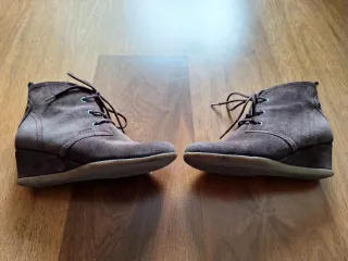 Botines de cuña alta con cordones. - Material tipo ante. - Diseño de botín. - Cierre con cordones. Apenas usados