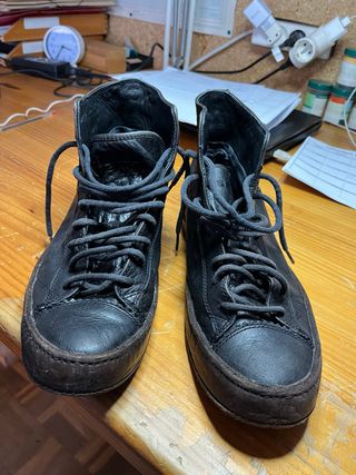 En buen estado como se ve en las fotografías. Botines de piel negros de tacón fino con puntera redondeada. Quedan a la altura del tobillo, no lo cubren. Cierre con cremallera en la parte lateral interior. Marca: United Nude Talla: 36 Altura del tacon: 10 cm Color: Negro Material: Piel exterior e interior. Poco uso (se ve en las fotos que apenas está desgastada la suela ni el interior). Otras prendas en mi perfil Posibilidad de hacer lote. #womenshoes #leathershoes #boots #womensfashion #womensclothing #unitednude #shoes #kneelengthboots #blackshoes #highheeledshoes