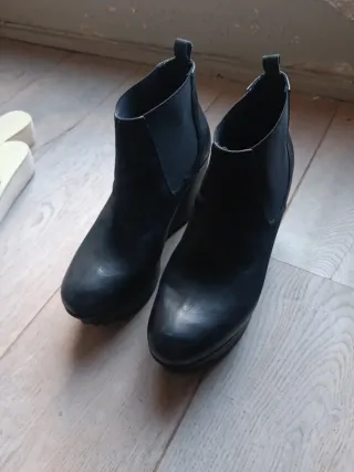 Elegante botín de piel en color negro. Un zapato versátil para cualquier ocasión. Yo calzo un 37 y me va bien - Material exterior: Piel. - Tacón grueso y cómodo. - Diseño moderno y favorecedor.