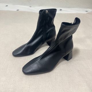 Botines de tacón elegantes y versátiles. - Material exterior de piel. - Diseño tipo Chelsea con elásticos laterales. - Tacón grueso para mayor comodidad. - Cierre de cremallera en la parte trasera.