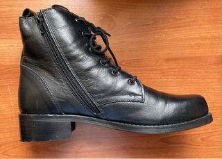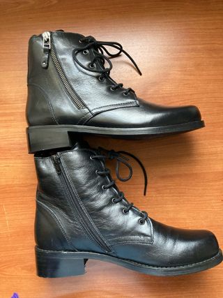 Botines de cuero negros de la marca Caramelo. - Cierre con cremallera lateral. - Cordones para ajuste. - Tacón bajo.