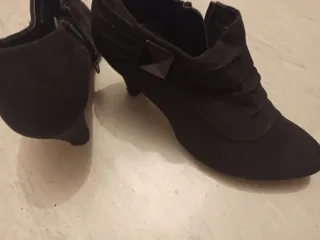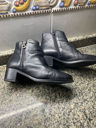 Botines de tacón en color negro. Cuentan con un práctico cierre de cremallera lateral. - Tacón grueso y estable (6cm) - Diseño elegante y versátil. - Muy comodo. Poco usado y bien conservado