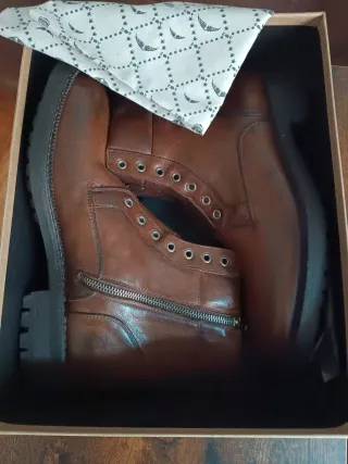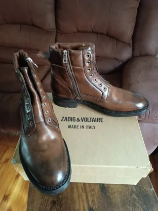 Botines de cuero Zadig & Voltaire en color marrón. Un diseño elegante y versátil. Forro Talla 43 - Cierre de cremallera lateral. - Ojales metálicos para cordones. - Detalle de tirador en el talón. - Fabricados en Italia.