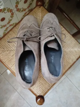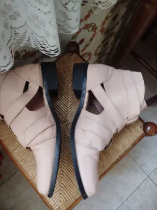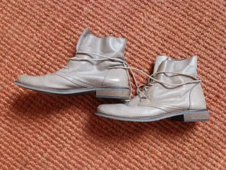 Botines beige de piel con cordones y abertura con cremallera lateral. El color marrón de la caña y la plataforma le dan un toque estiloso y moderno. Impecables, los usé una vez y me van pequeños. Solo se nota ese uso en la suela. Marca Gaimo. Precio original: 110€.