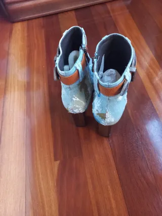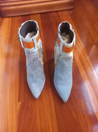 Botines con un diseño único y llamativo. - Estilo vaquero. - Acabado denim. - Detalles multicolor.