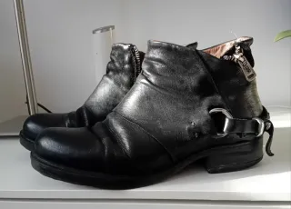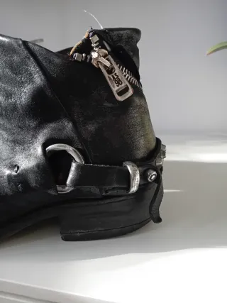 Botines de piel con un diseño único y moderno. - Cierre de cremallera lateral. - Detalle de hebilla y anilla metálica. - Piel flexible y de alta calidad.- Originales detalles de cremallera ybtachuelas