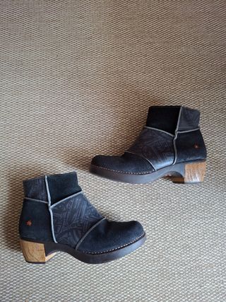 Botines de piel de la marca Art con un diseño único y original. - Combinación de ante y tejido estampado. - Detalle de estrella naranja. - Tacón de madera. - Cierre de cremallera lateral. Precio no negociable #y2k #00s #camper #skunfunk #desigual #cuero #elnaturalista #Botas #drmartens