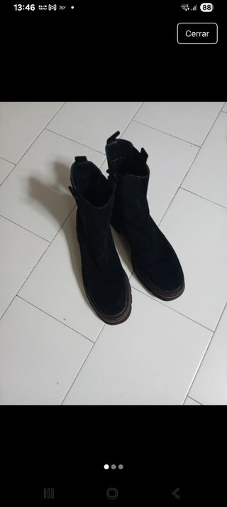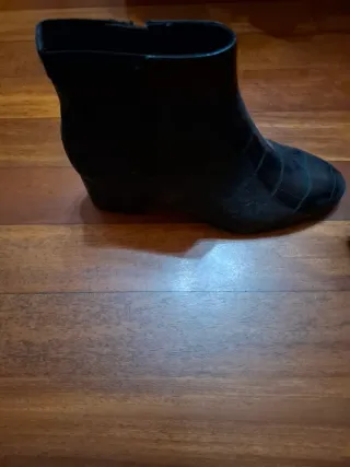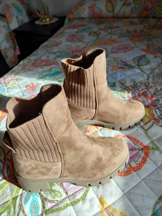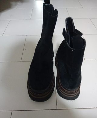 Botines de ante con forro interior de pelo , plataforma blanca con trazos negros a prueba de frío y agua. - Diseño tipo chelsea. - Suela de goma con detalles. - Cierre lateral elástico. - Diseñadas para una buena pisada y una espalda descansada . Ya es probablemente lo último que subire .’ ESTE MES CIERRO LA PÁGINA. Las dejo en 30€. precio innegociable y lleva detalle a juego . ME GUSTARÍA QUE LEYESEIS MIS RESEÑAS . Gracias por participar en este año y medio solidario con vuestras compras la verdad que todo de firma y detalle a unos precios ... Me emociono Z UN FUERTE ABRAZO