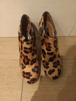 Botines con estampado animal print de Zara. - Diseño de pelo. - Cremallera lateral.