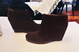 Botines de ante con cuña en color marrón. Un calzado elegante y cómodo. - Material: Ante - Diseño: Cuña - Color: Marrón