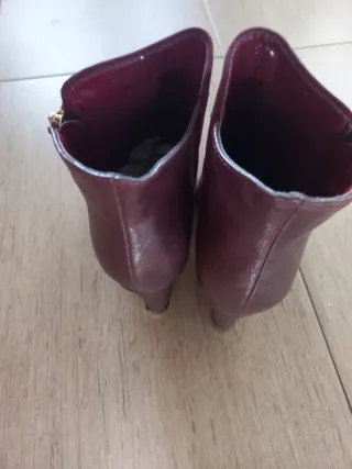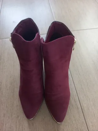 Elegantes botines de estilo moderno. - Material exterior tipo ante. - Punta afilada. - Cremallera lateral dorada para facilitar el acceso. - Detalle metálico en la punta.color burdeos