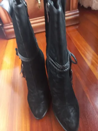 Botines de ante en color negro. - Material: Ante - Color: Negro - tacón ancho 7cm - cierra con cremallera parte de atrás.