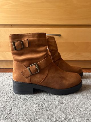 Botines de estilo casual en color marrón. - Material exterior tipo ante. - Detalle elástico en los laterales. - Suela gruesa y resistente.