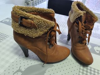 Botines de piel con forro interior de borrego. Se encuentran en buen estado. - Cierre lateral con cremallera. - Suela de goma. - Comprados en Zara aunque no tienen la marca