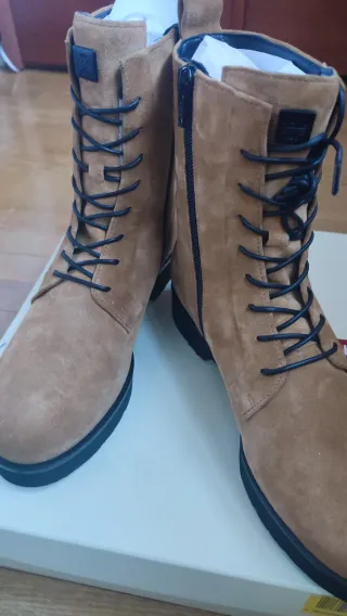 Vendo estos botines con cuña color camel, súper cómodos y muy favorecedores. Tienen un acabado efecto ante que combina con todo y un diseño estilizado con cordones que sujeta muy bien el pie. ✔ Cuña que estiliza sin renunciar a la comodidad ✔ Suela en muy buen estado ✔ Sin rozaduras importantes ✔ Perfectos para looks casual y de otoño-invierno Ideales para diario, para ir cómoda y con un toque elegante. Envío rápido y bien embalado. 🔥 Se venden muy rápido este estilo de botín por lo combinables y cómodos que son. ¡Aprovecha!