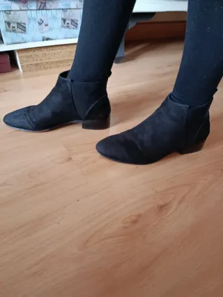 Botines de ante, talla 41. Un básico para tu armario. - Cierre con cremallera lateral. - Tacón grueso y cómodo, de 7 cm. - Diseño de caña baja, por el tobillo. VISITA MI PERFIL. HAGO DESCUENTOS POR LOTES. MUJER TALLA XX, XL y L y 41 DE CALZADO. HOMBRE XX y XL y 43 CALZADO.