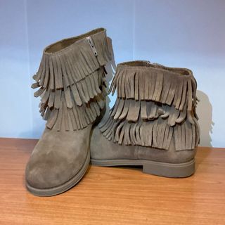 Botines de ante en color marrón con detalle de flecos. - Diseño con flecos en el lateral. - Cierre con cremallera.