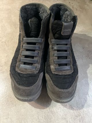 Botin de ante gris, muy comodos. Suela gruesa de goma.