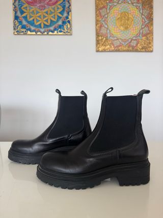 Botines de ante negros, sin estrenar. Cómodos, ponibles y calentitos - Talla 39/40. - Plantilla mullida para mayor comodidad. - Diseño tipo Chelsea.