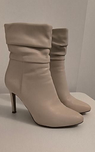 Botines de tacón en color blanco roto. Se usaron una sola vez y son muy cómodos. - Diseño elegante y moderno. - Tacón fino para estilizar la figura. - Material suave al tacto.
