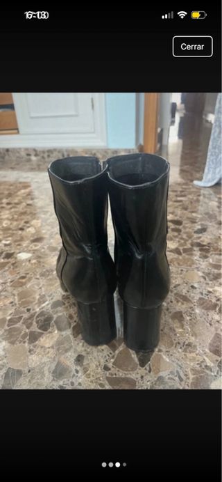 Botines estilo Barbie con acabado charol brillante y tacón de plataforma. - Diseño de botín. - Tacón grueso y plataforma. - Cierre de cremallera lateral. Sin caja. Más botines chulos en mi perfil