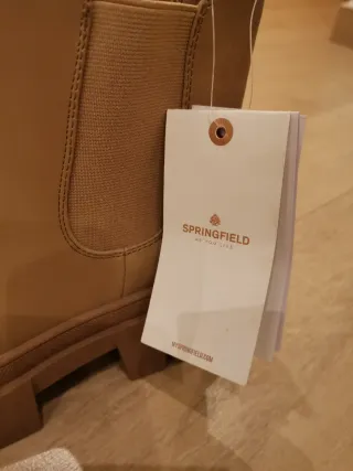 Visita mi perfil más botines chulos. Precio en tienda muy superior, ver etiqueta. Nuevos a estrenar! los vendo por falta de espacio. Botines de la marca Springfield en color beige y marrón. Tienen un diseño moderno con suela gruesa. - Detalle de tira en la parte trasera. - Paneles elásticos laterales para facilitar su puesta.