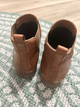 Botines de ante en color marrón. Usados solo una vez. Los vendo porque me quedan grandes. En perfecto estado - Cierre con cordones. - Detalle de trabilla en la parte trasera. - Suela de goma.
