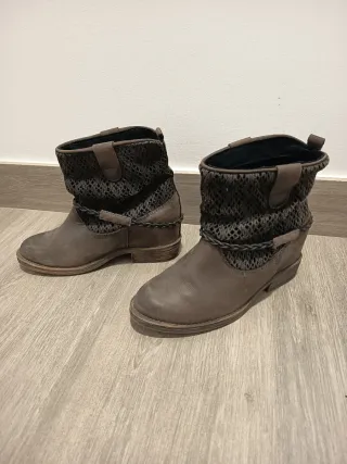 Botines de la marca Mustang en talla 36. Usados sólo una vez. - Diseño moderno y versátil. - Acabado en color marrón. - Cierre de cremallera lateral. Cremalleras en los 2 laterales que facilitan poner y quitar el botín.
