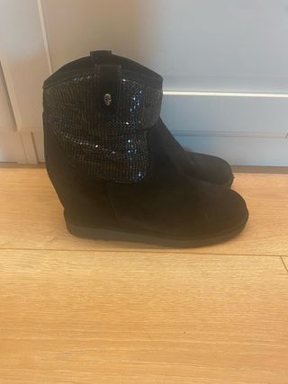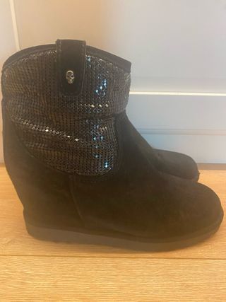 Botines de ante negros, nuevos a estrenar. Son elegantes y cómodos. - Diseño de cuña. - Detalle de lentejuelas en la caña. - Talla única.