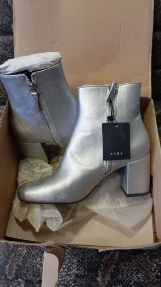 Botines de tacón con un diseño moderno y elegante. - Material de ante suave. - Cremallera lateral para facilitar el acceso. - Detalle metálico en el tacón. No se ha usado nunca.