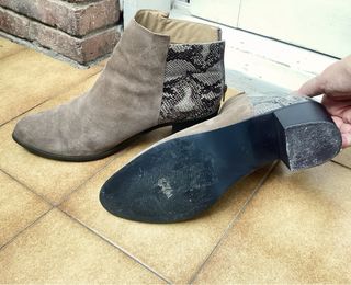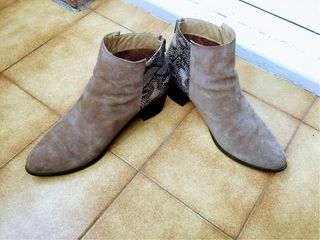 Botines ante beige y serpiente talla 43. Tacón 6 c