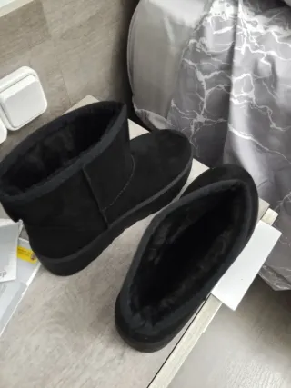 Botines de ante negros, ideales para el frío. - Diseño corto y cómodo. - Forro interior suave.