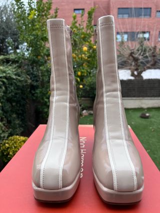 Botines de la marca Noa Harmon en color beige y talla 39. Un calzado elegante y moderno. - Diseño con detalles en contraste. - Plataforma delantera. - Calzan al número - Muy poco uso