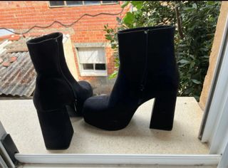 Sólo estrenados. Tienen algún roce,como se ve en las fotos,por eso el precio. Botines de tacón en color rosa de Bershka. Son muy cómodos y elegantes. - Material exterior aterciopelado. - Cierre con cremallera lateral. - Tacón grueso.