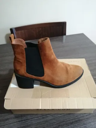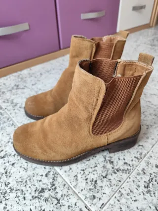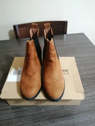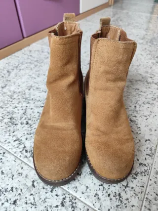 Botines de ante con un diseño clásico y versátil. - Material: Ante - Color: Marrón - Tipo: Botines - Estilo: Chelsea boots usado en dos ocasiones totalmente nuevos