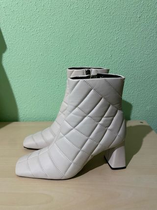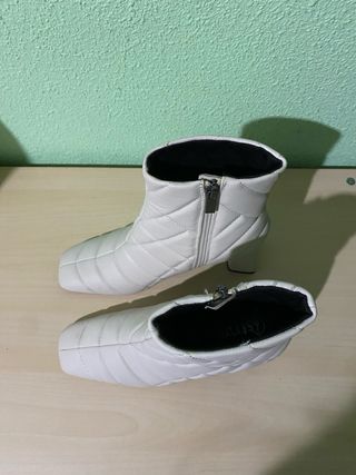 Botines de estilo acolchado con un diseño moderno. - Acabado en color blanco. - Tacón cuadrado. - Punta cuadrada.