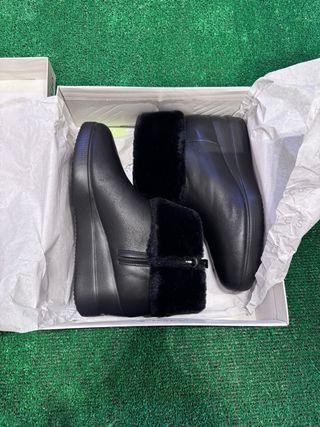 Botines Geox originales, modelo D Stardust C, en color negro. Fabricados en piel nappa con forro sintético tipo pelo, ideales para otoño e invierno. Muy cómodos, calentitos y transpirables gracias a la tecnología Geox. 🔹 Marca: Geox 🔹 Modelo: D Stardust C 🔹 Color: Negro 🔹 Talla: EU 41 (US 10.5 / UK 7.5 / 273 mm)