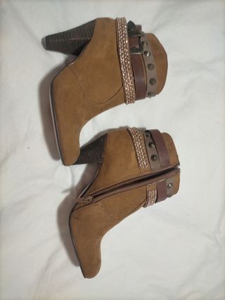 Botines de mujer Pull&Bear, color marrón. Están en muy buen estado, usados solo tres veces. Talla 38 - Son de tacón. - Tienen cremallera lateral. - Diseño sencillo y elegante.