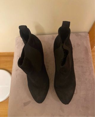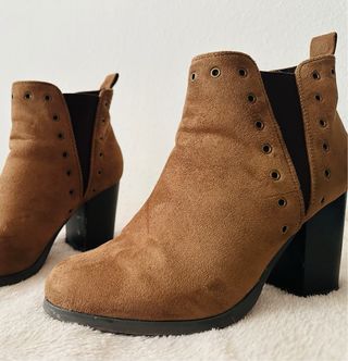 Botines de ante marrón de Zara, talla 36. Están en muy buen estado, apenas usados. - Suela en perfecto estado. - Tacón cómodo y elegante.