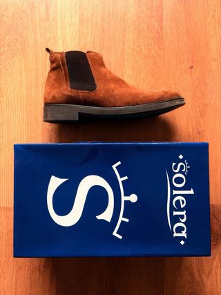 Botines de ante de hombre de Solera en talla 41. Tipo chelsea. Usados pero en buen estado. Se entregan con su caja.